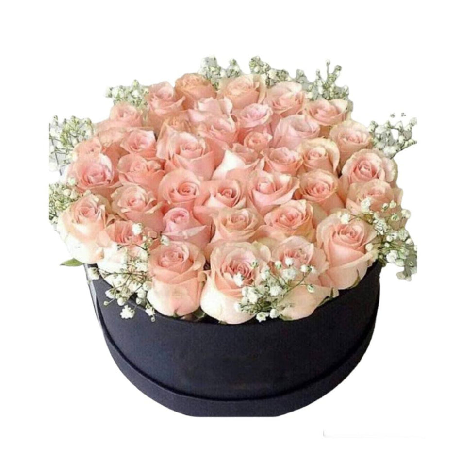 Box circumference : 15 inches. Consists of baby pink Roses with white accents. NOTE: This is a fresh flower and... Read more