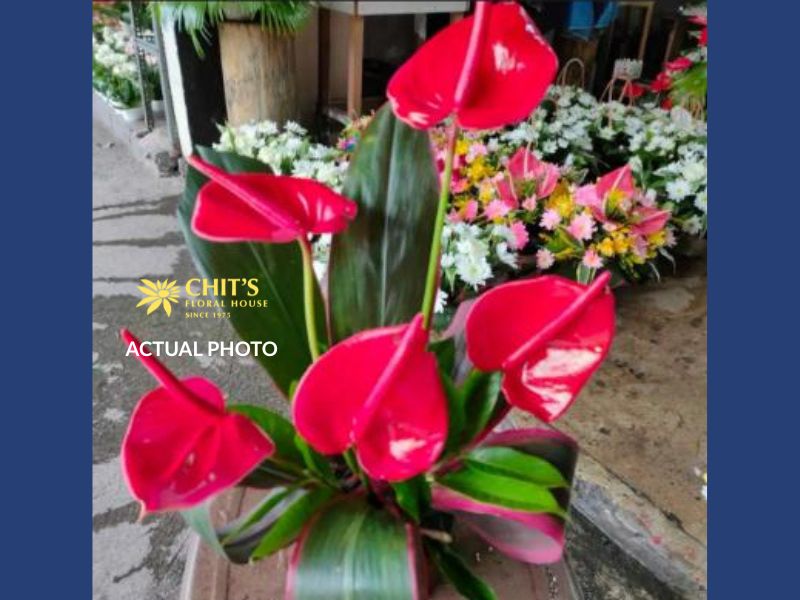 Crimson Heart’s Devotion Basket – A striking funeral Spray flower basket featuring anthuriums in pink and red hues, artistically arranged... Read more