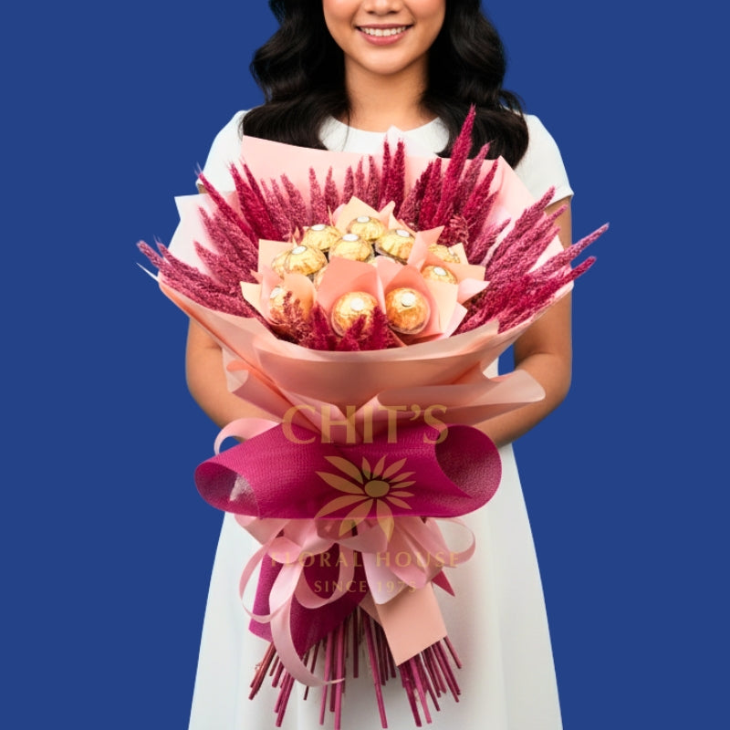 Magenta SweetheartMake every moment sweeter with Magenta Sweetheart, a charming bouquet featuring 16 pieces of Ferrero Rocher chocolates beautifully arranged... Read more